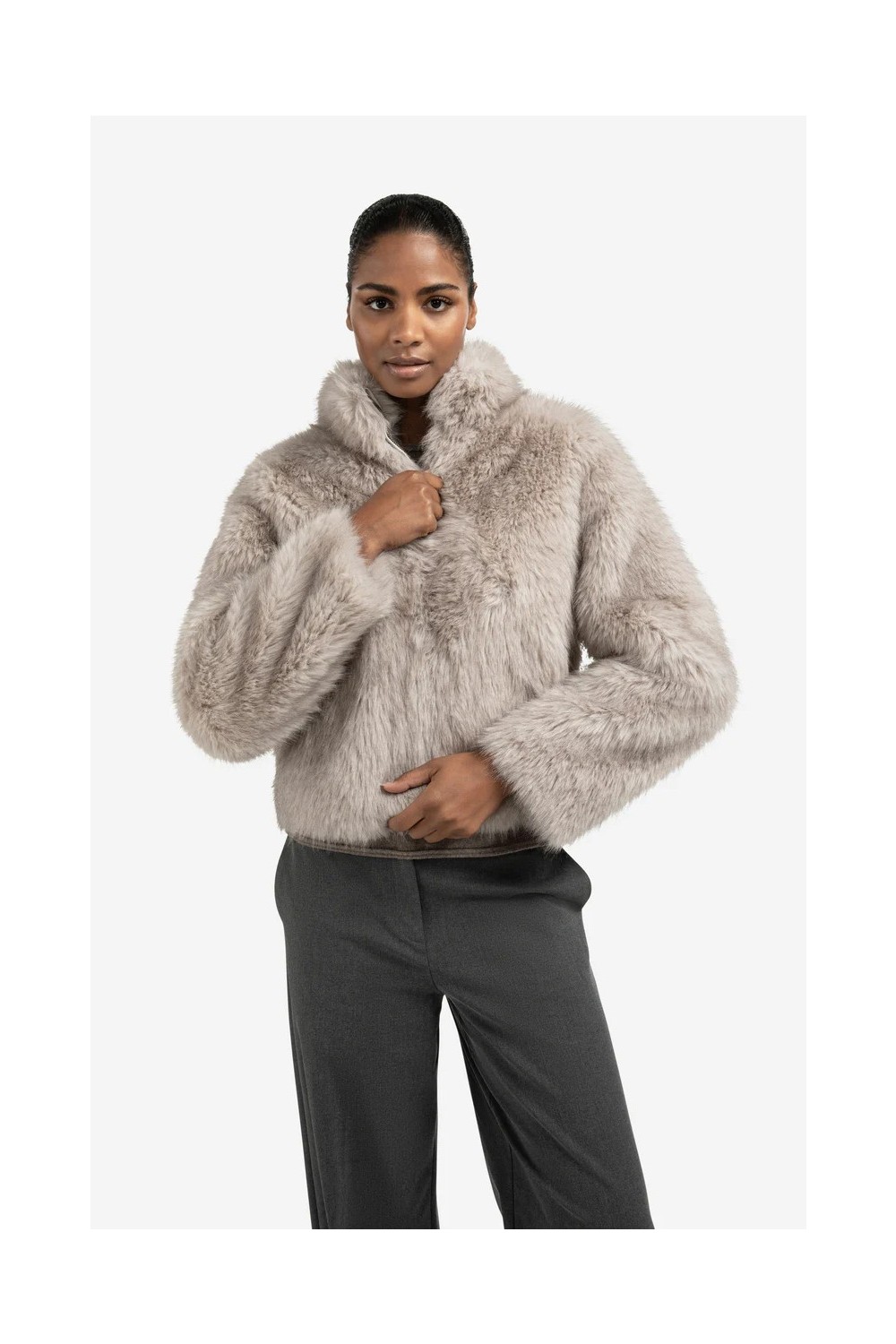 abrigo chaqueta corta yaya piel sintetica gris cuello alto