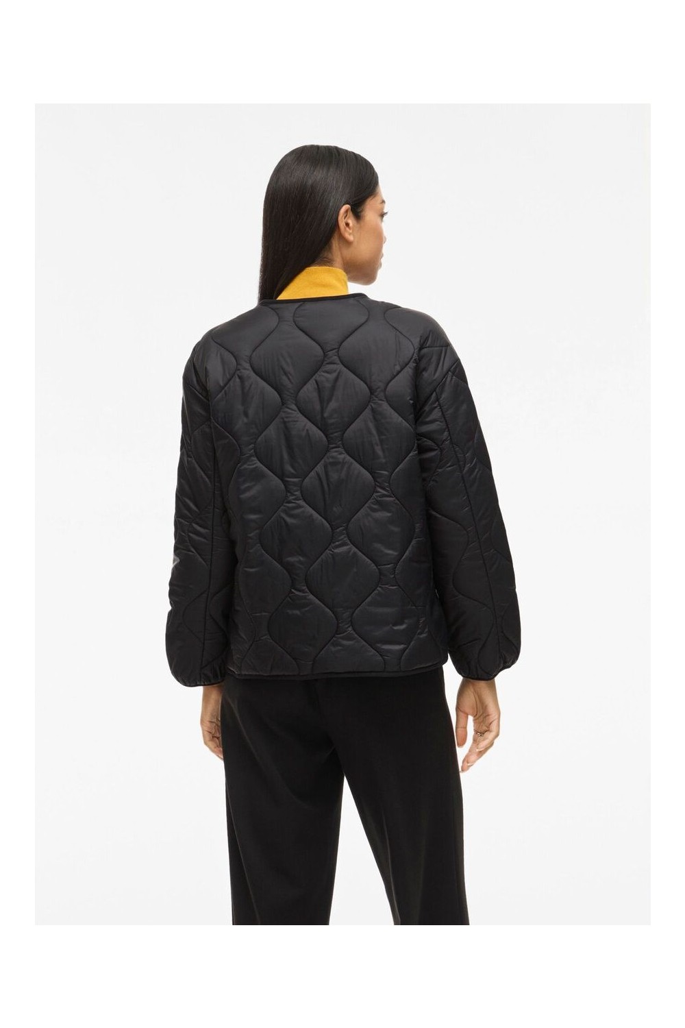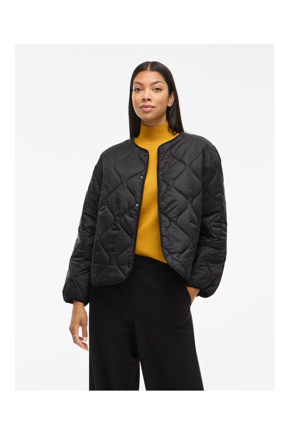 Chaqueta acolcha de cierre frontal con botones. Bolsillos laterales y cuello redondo.