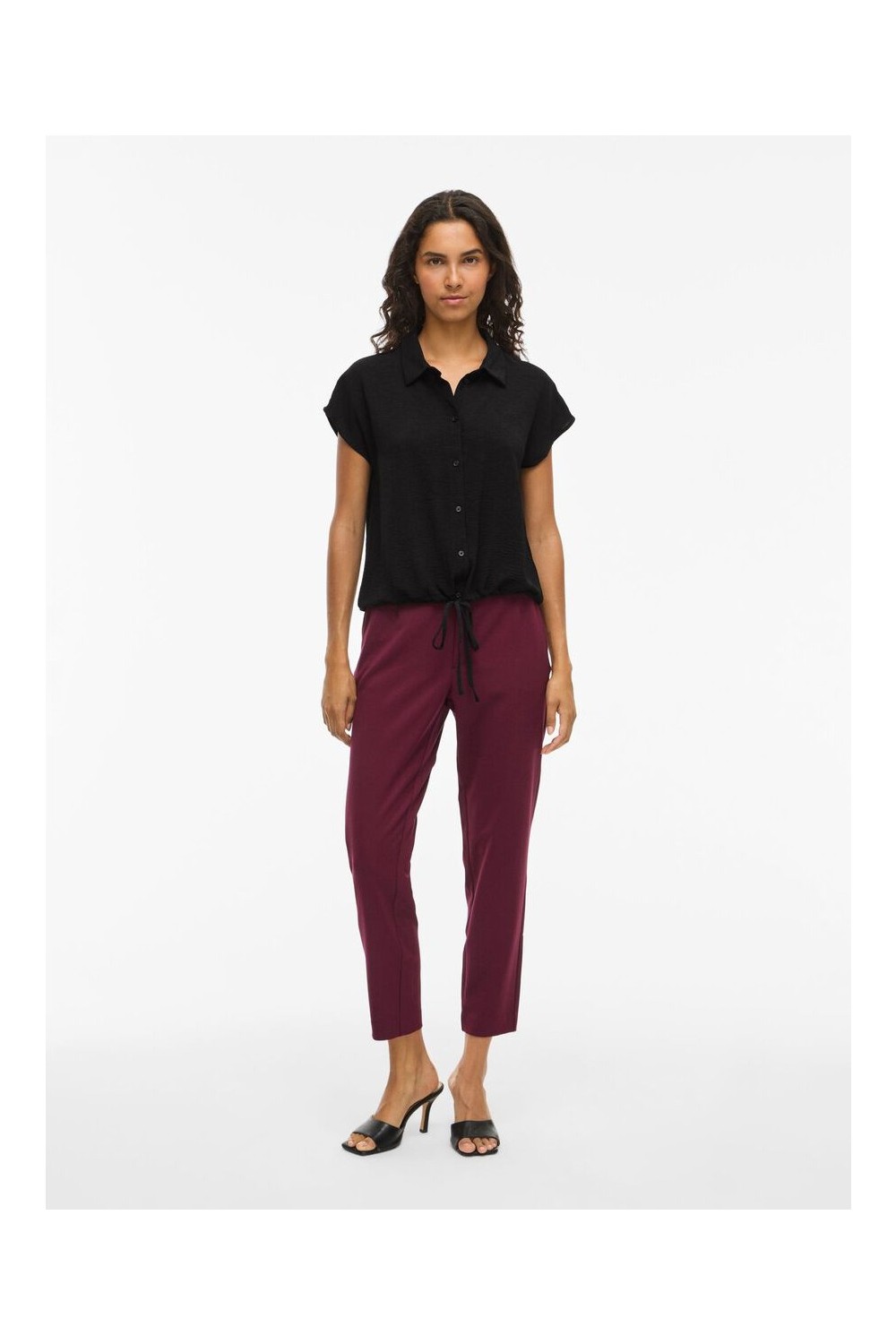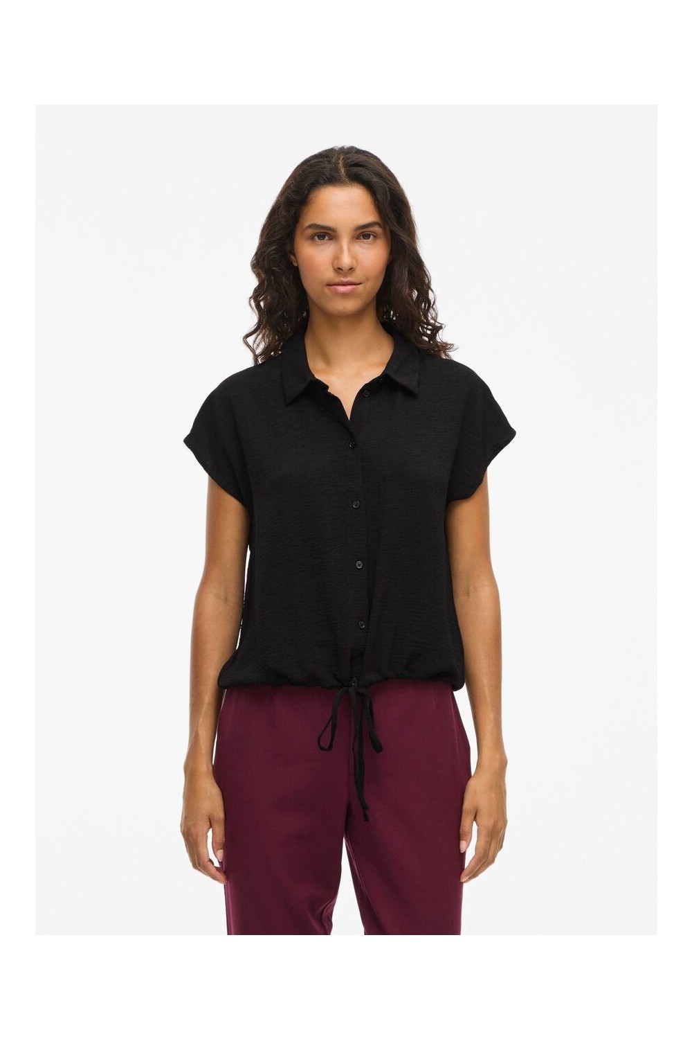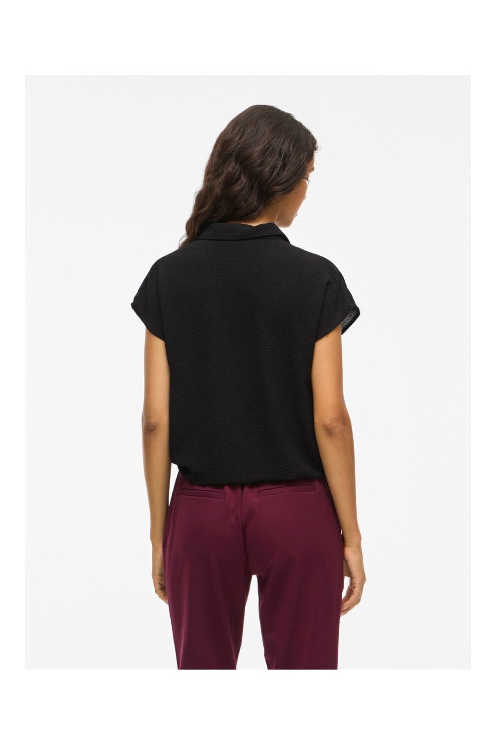 camisa manga corta burdeos y negro vila mujer