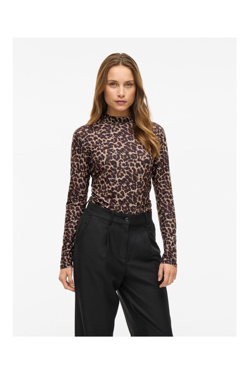 Top de manga larga y cuello alto de tejido ligero y elástico.
