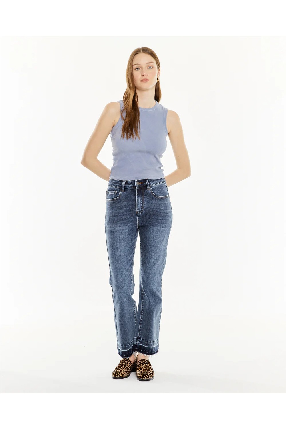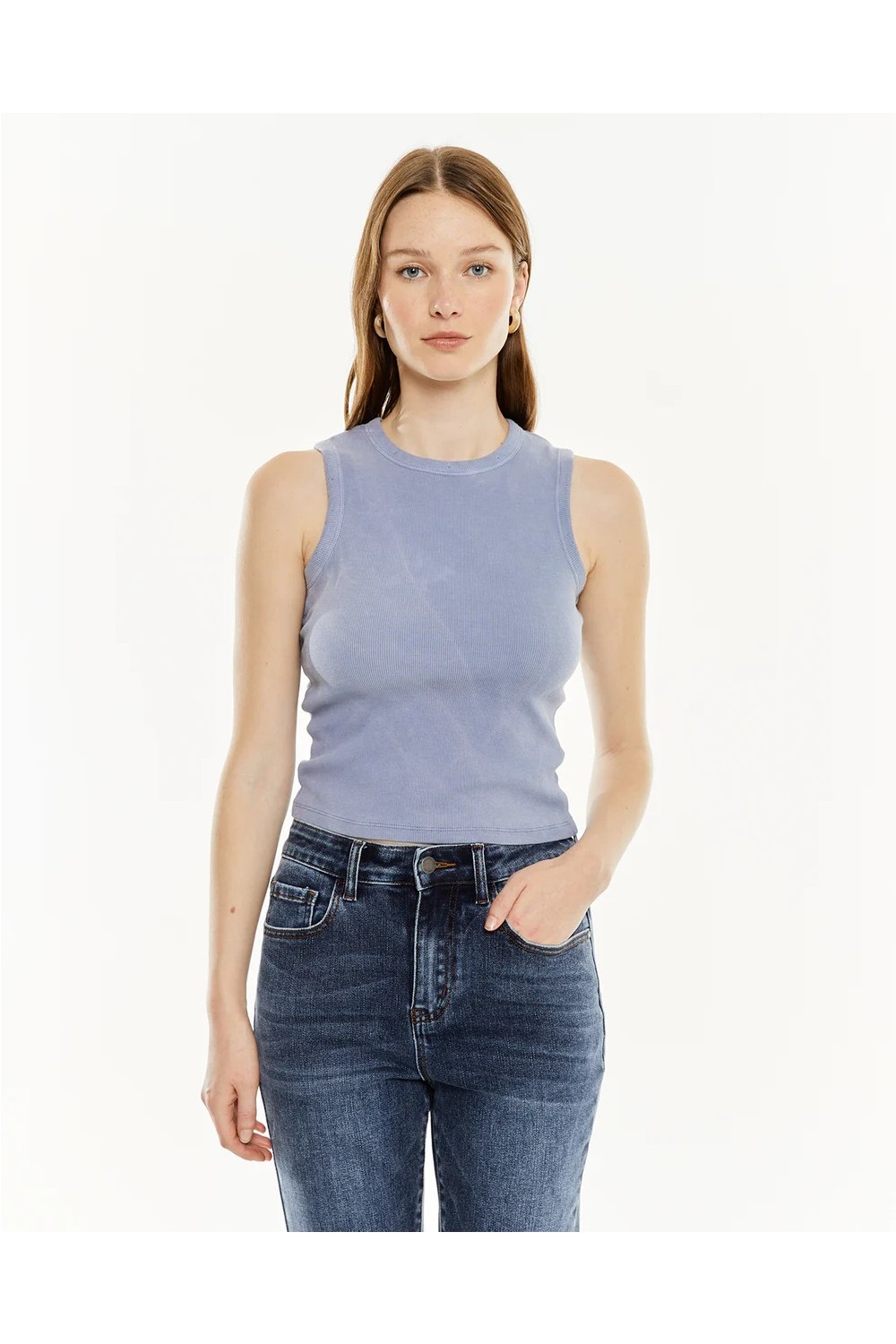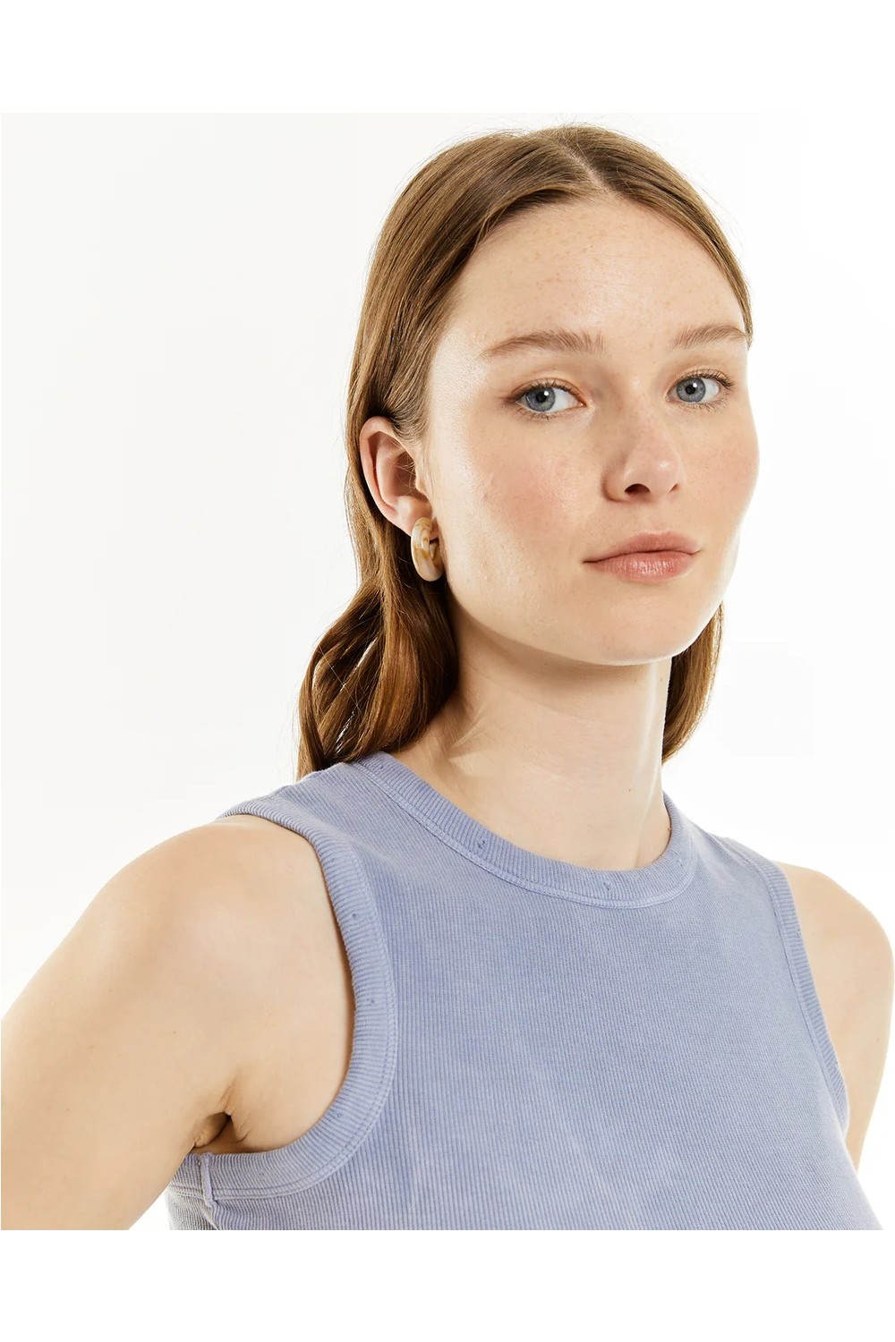 Camiseta de mujer sin mangas, con tintura efecto de lavado. Prenda sostenible.
