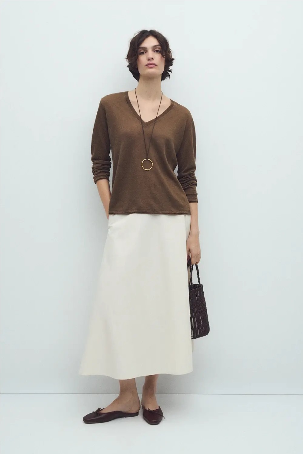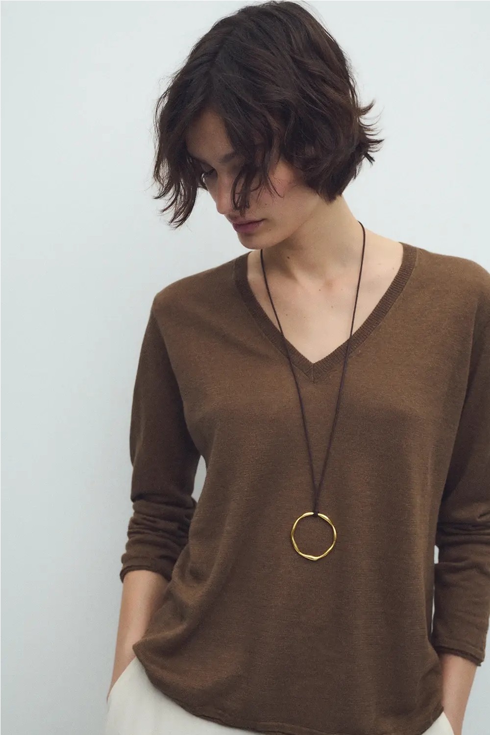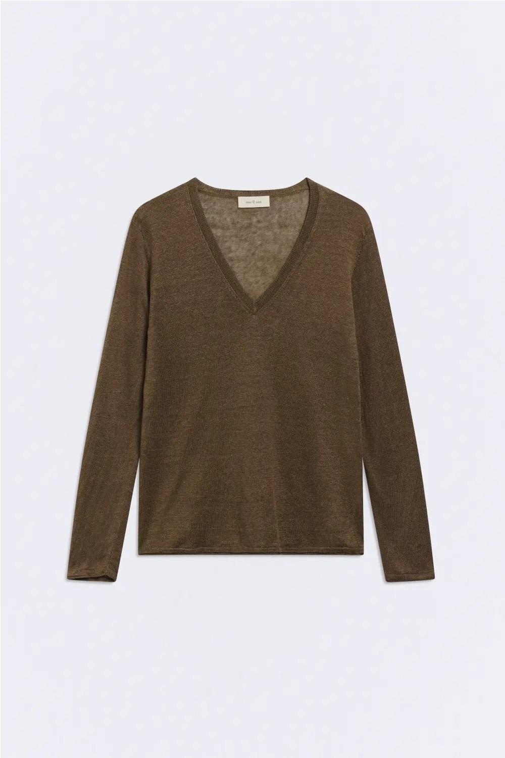 Jersey de manga larga hecho de 100% lino. Cuello con escote en pico. Fitting holgado.