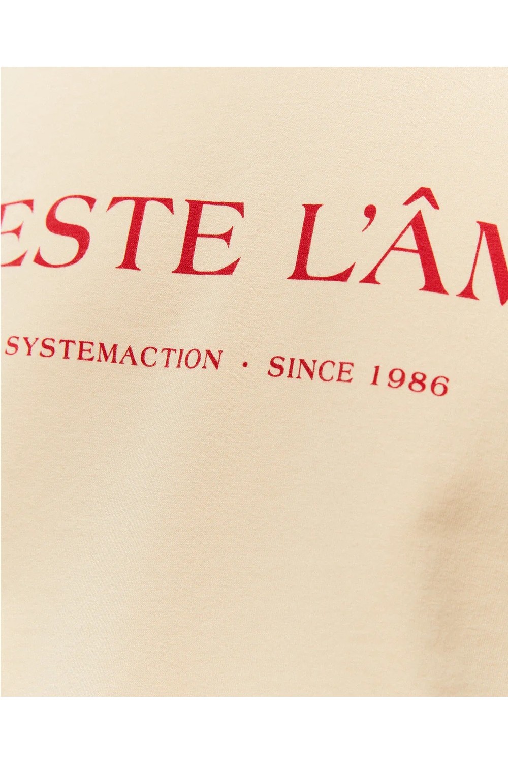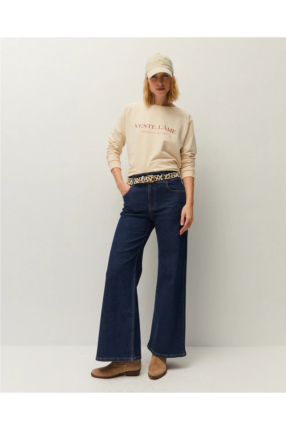 Sudadera de cuello redondo y manga larga acabada en puño. Detalle de texto estampado en el delantero a contraste. Prenda sostenible