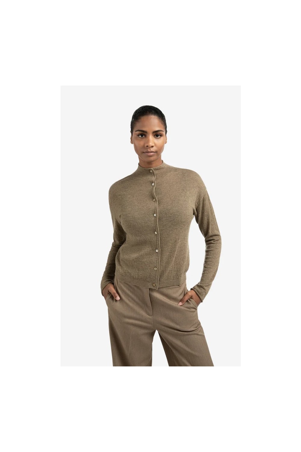 Chaqueta puntos suave con corte recto, cuello alto y mangas largas