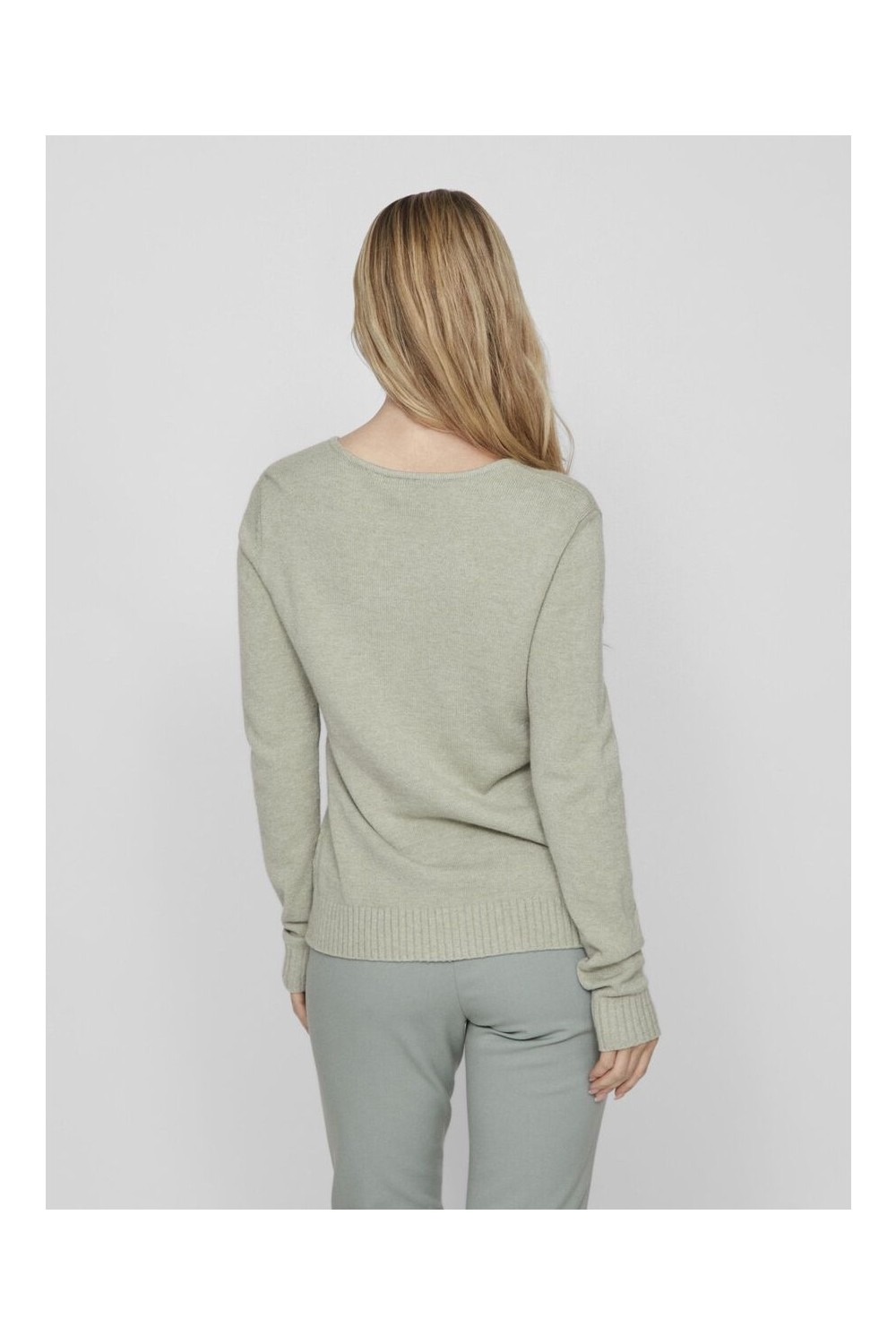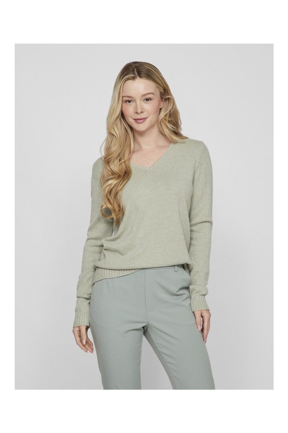 Top de punto simple y cuello en V con mangas largas. Bordes acanalados. Talla mas pequeño de lo habitual.