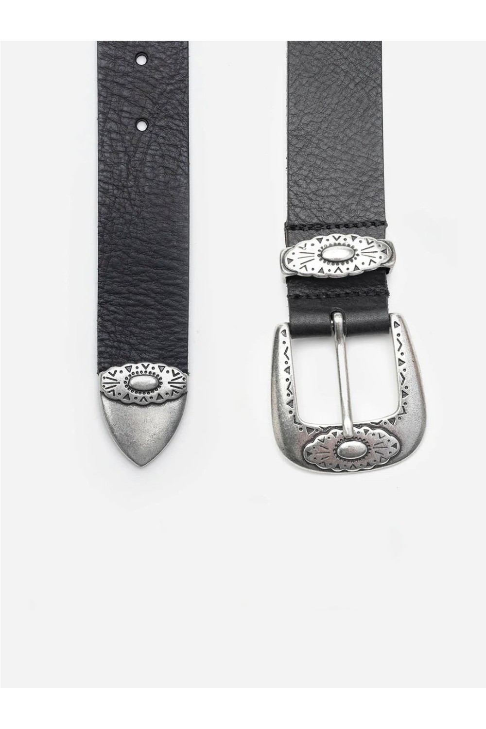 Cinturón de piel de estilo western, perfecto para llevar tanto en la cadera como en la cintura.