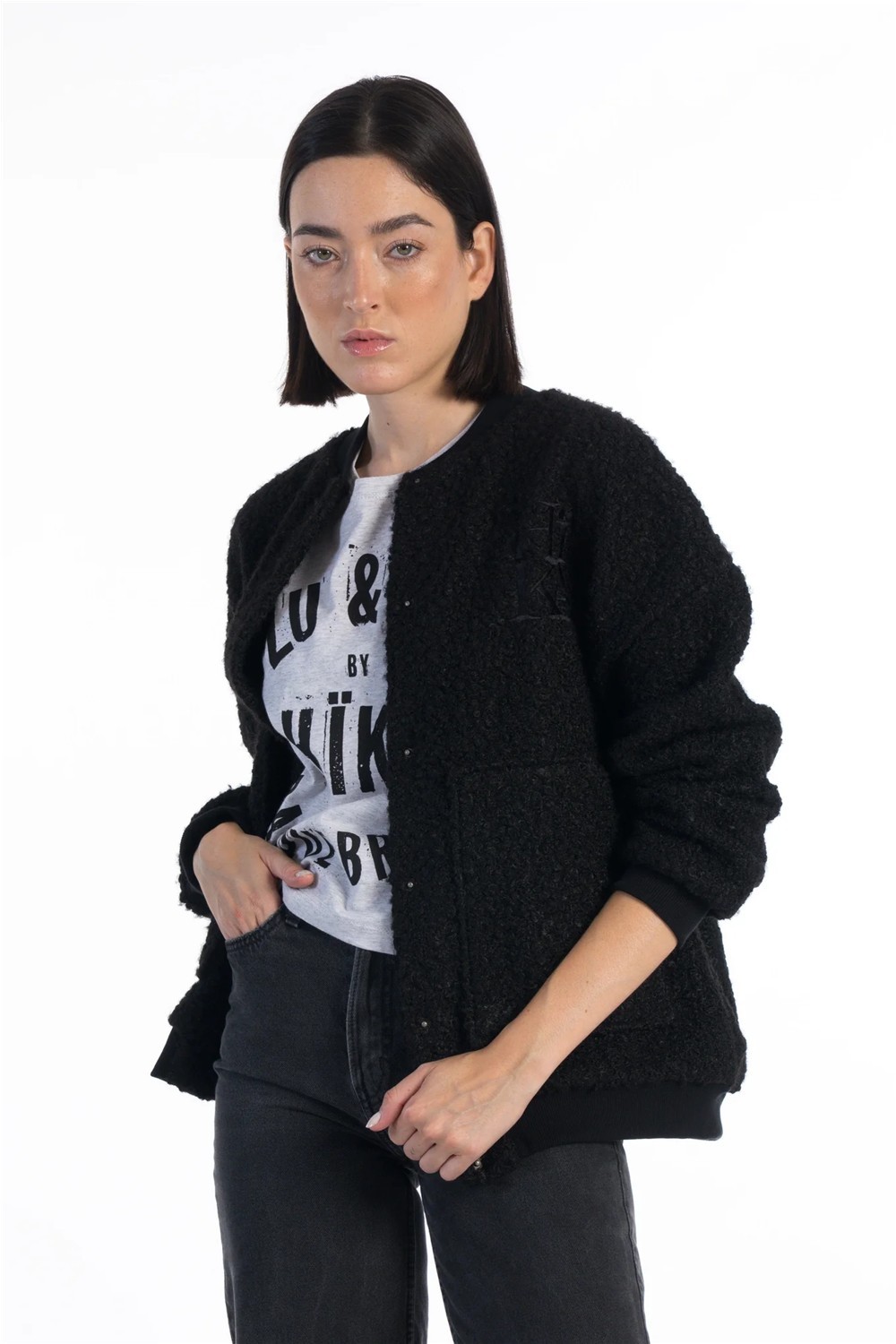 Bomber, con forro interior Logo bordado en hilo negro 60% poliester 40% algodón