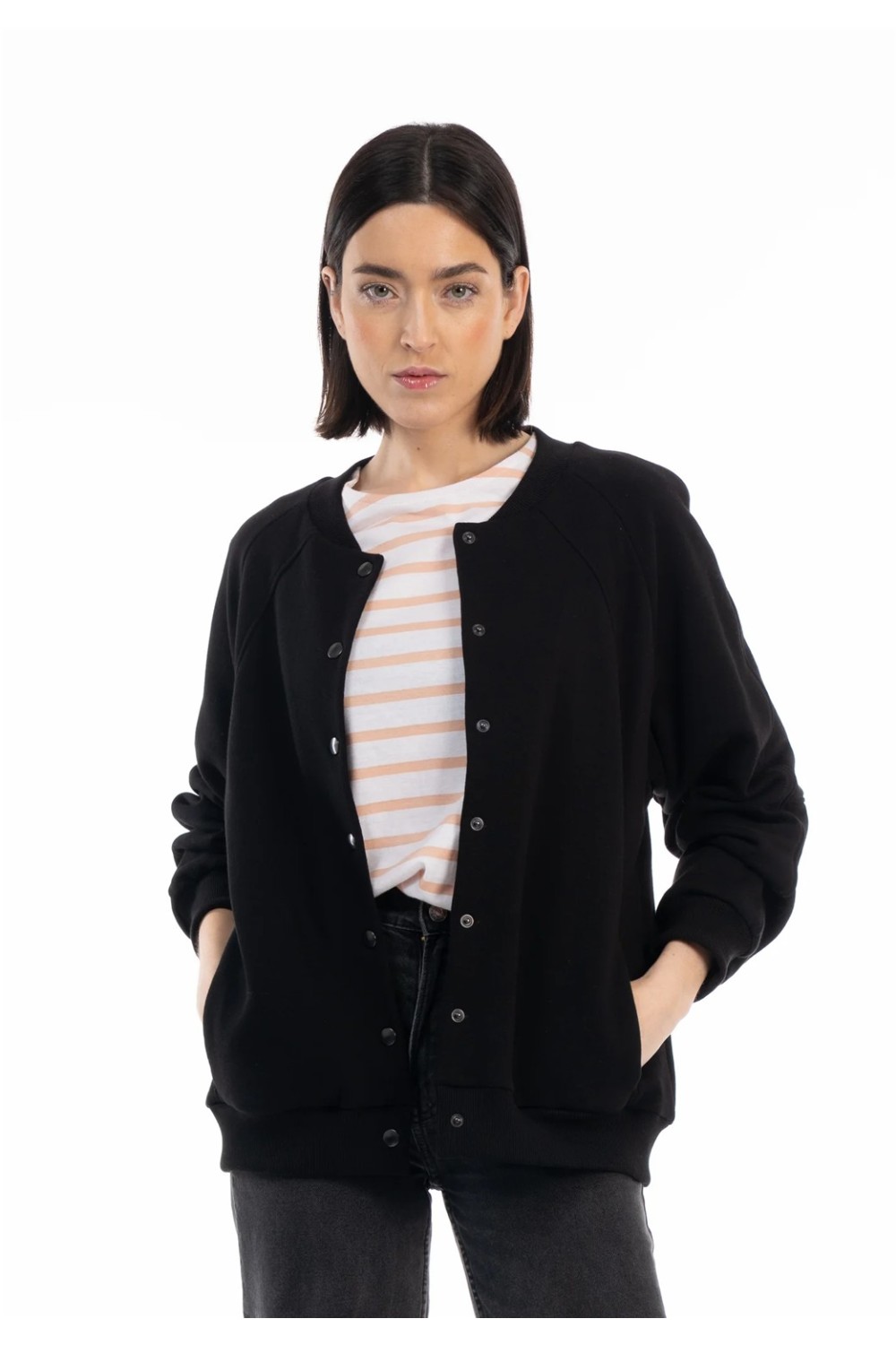 Bomber algodón 100%. Cierre mediante corchetes.