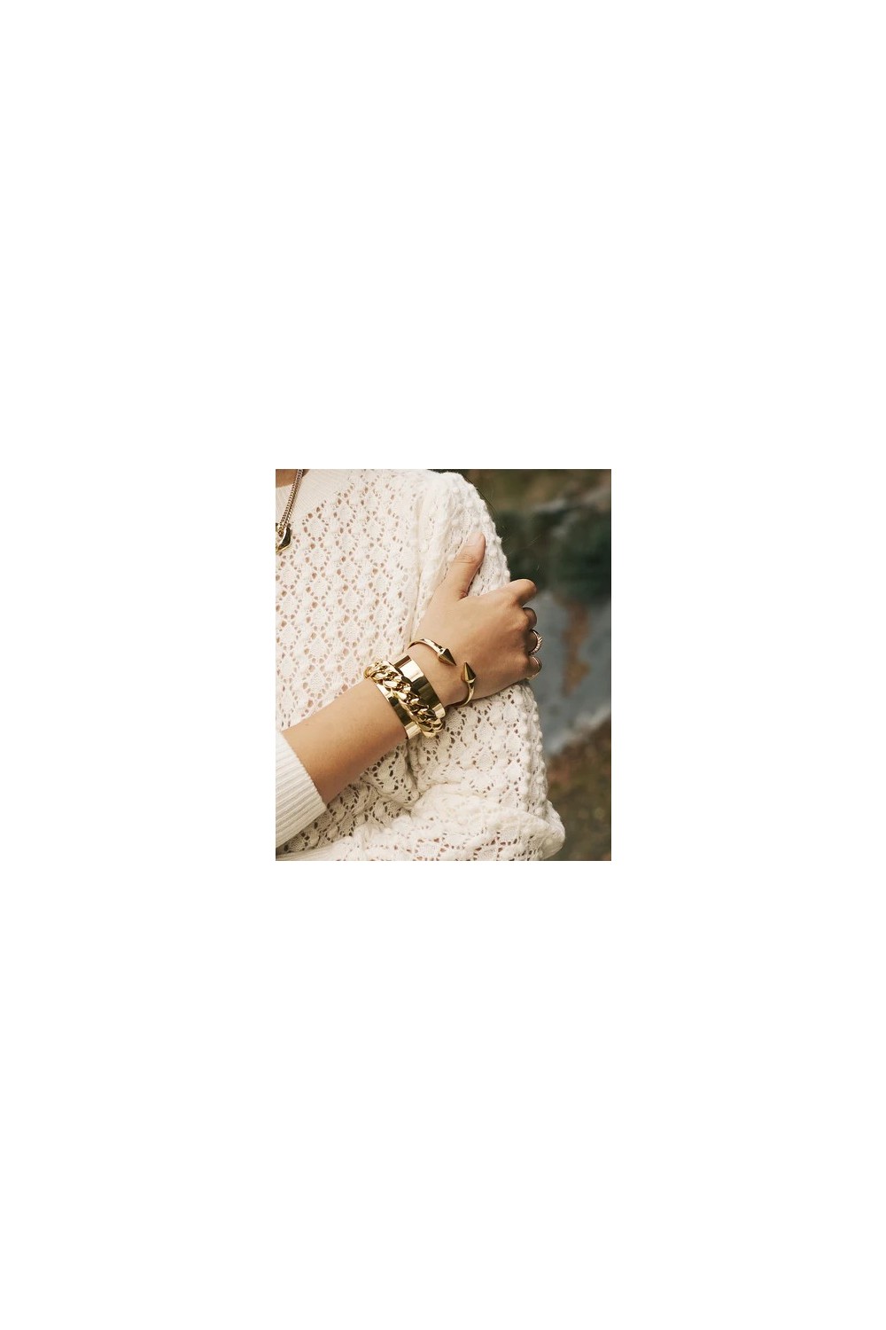 Pulsera lisa de acero inoxidable u oro fino. Tiene dos formas puntiagudas en la parte superior.
